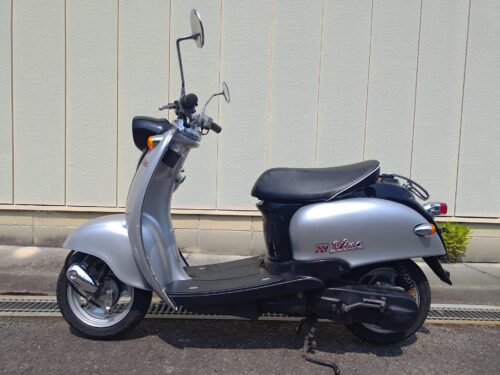2002年式ヤマハビーノ(2サイクル)シルバーメタリックは、軽快な走りとクラシカルなデザインが魅力的な原付バイクです。コンパクトで扱いやすく、街乗りや通勤に最適です。2サイクルエンジンのため、軽快な加速と愉快なサウンドを楽しめます